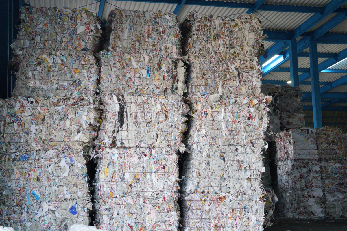 古紙の塊が、壁のように積み上げられている。目の前に立った瞬間、思わず足が止まった。どこにでもある身近な「紙」が、圧倒的な物量となって迫ってくる。ここは「ヤード」と呼ばれる古紙回収施設だ。ひとつひとつの塊は、美しく整った立方体。あちらは段ボール、こちらは新聞紙。街のあちこちから集められた古紙が種類ごとに選別され、ひとつのブロックとなって、次の旅路を待っている。行き先は、新たな紙としての生まれ変わりだ。